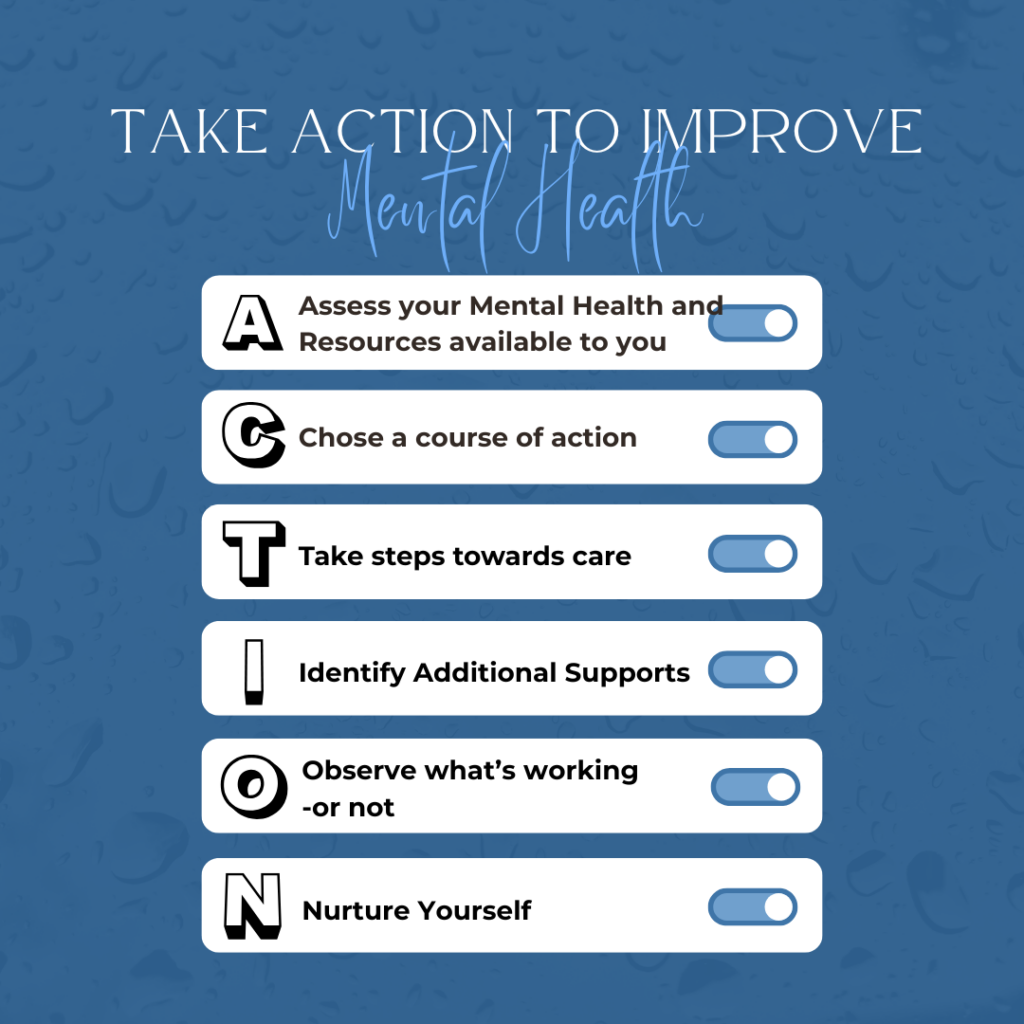 Let’s dive into how you can take A.C.T.I.O.N. to make improving your mental health a priority in May